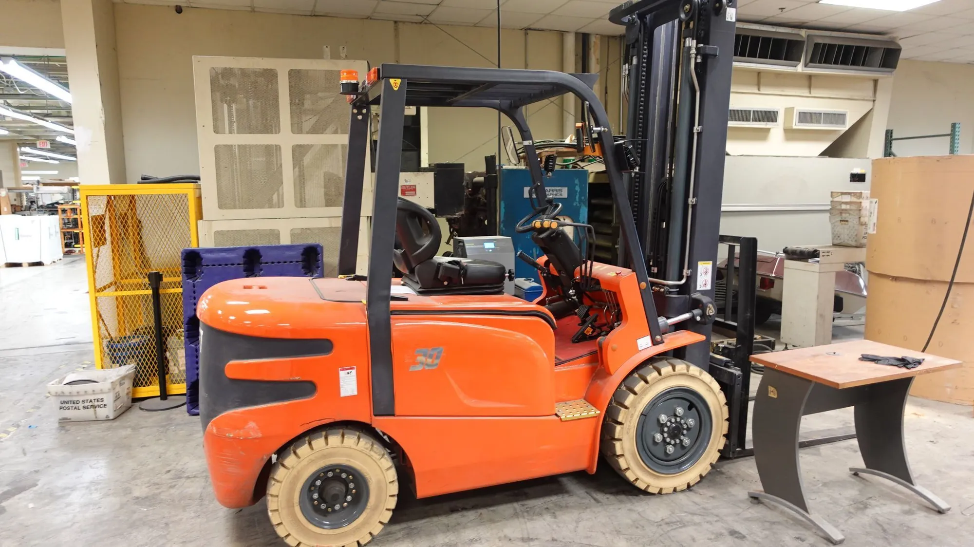 • (1) Model 30 4,000 lb lift truck with forks (orange)