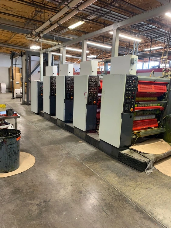 - (4) Heidelberg V30 Printing Units with slot plate, brush dampening, and Monigraf remote inking