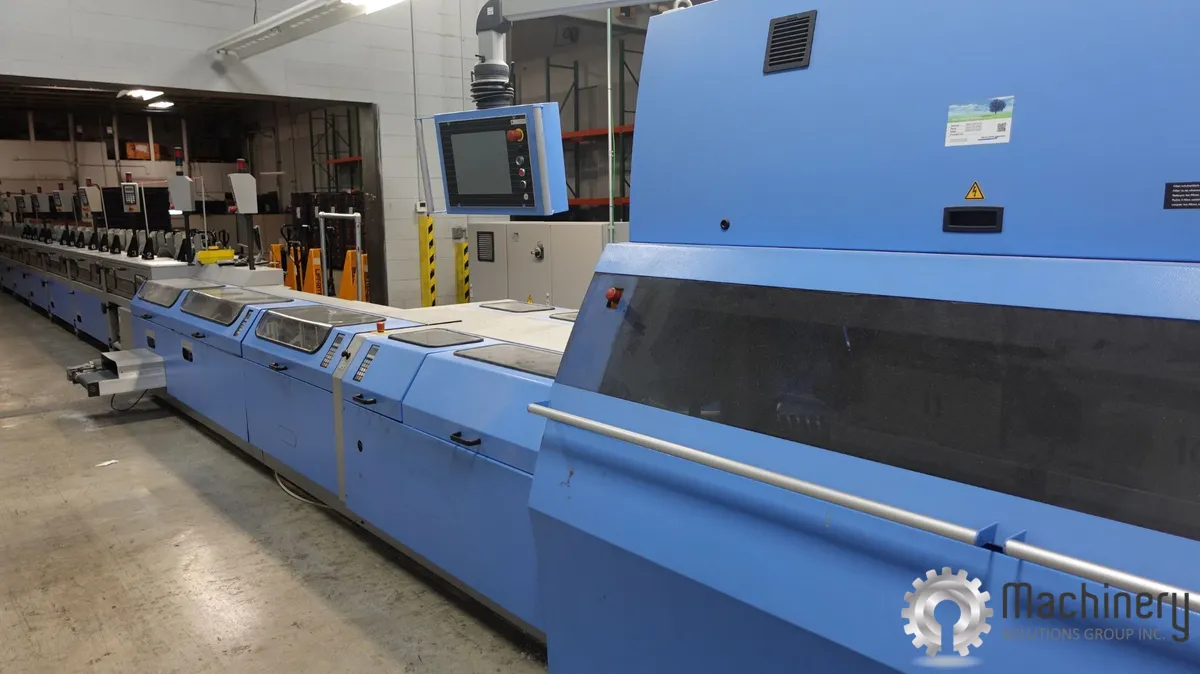 This 2013 Müller Martini 3026 Acoro perfect binding line is a complete, production-ready system equipped for high-volume commercial bindery operations. Featuring 24 gatherer pockets, hot melt glue, trimming, cooling, and dual stacking systems, this line delivers efficient, reliable softcover book production with strong throughput and consistent quality.