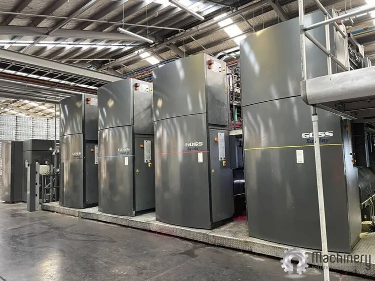 Used Goss commercial heatset web presses available across the Sunday Series and M-Series platforms. Models include the Sunday 5000, Sunday 4000, Sunday 3000, Sunday 3000/32, Sunday 2000, M-800, M-600, M-600 Folia, and M-500. These presses are widely used for magazines, catalogs, retail inserts, and other high-volume commercial heatset applications.