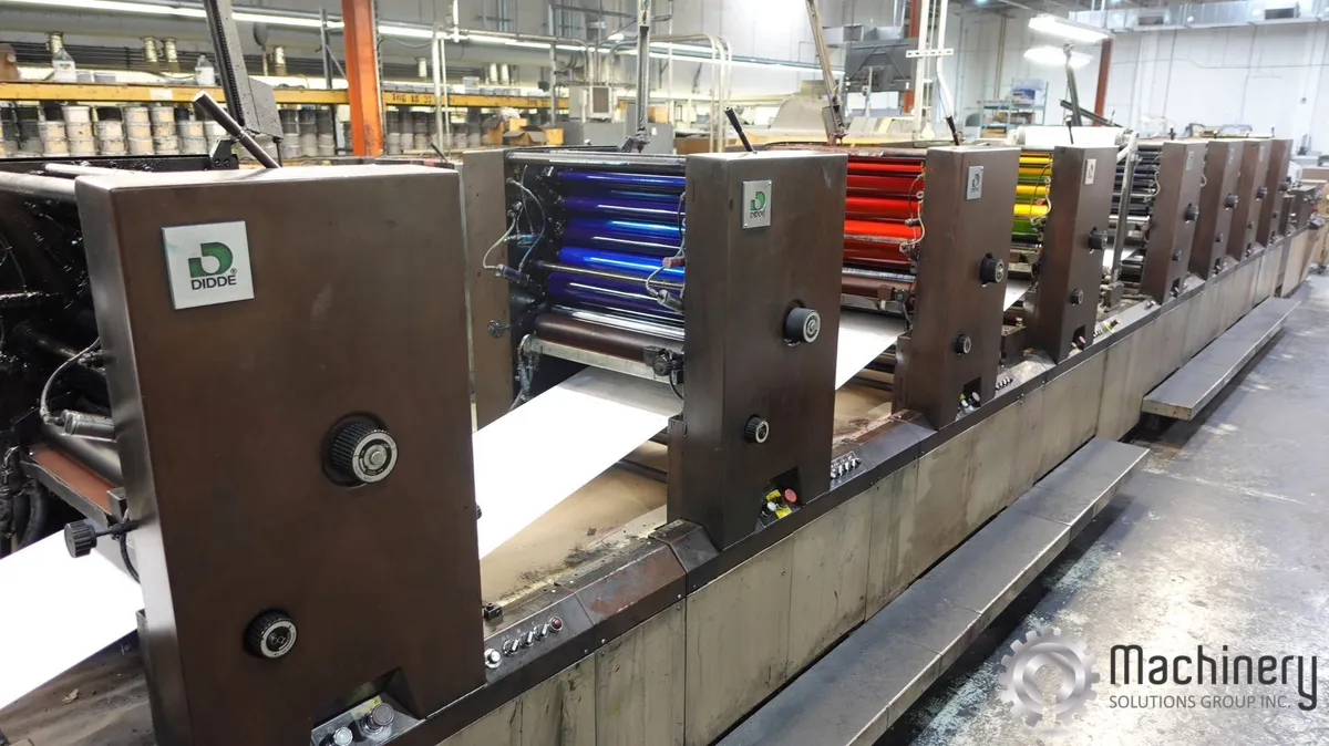 This 1992 Diddie Glaser ML is an 8-color web offset press designed for consistent performance in commercial, publication, and specialty web printing applications. With a 20.5” (520mm) web width and 22” variable cutoff, the press offers a proven format well suited for a wide range of production requirements.