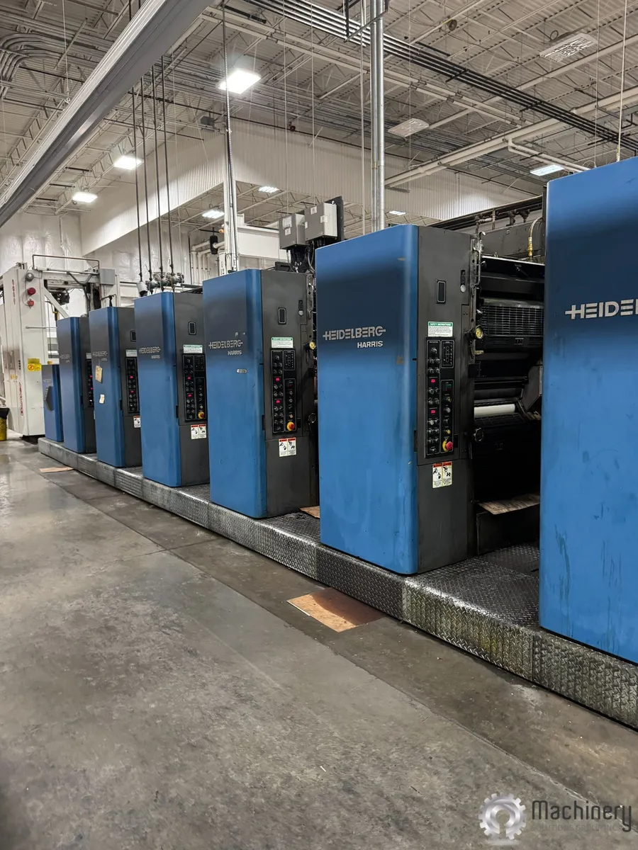 This 1997 Heidelberg Harris M110C is a 6-color commercial web offset press designed for publication, catalog, and specialty print applications. The M110C platform is well regarded for its mechanical reliability, compact footprint, and consistent print quality. When configured with sheeting and stacking, the press is capable of producing sheeted output with sheetfed-like quality from a web platform.