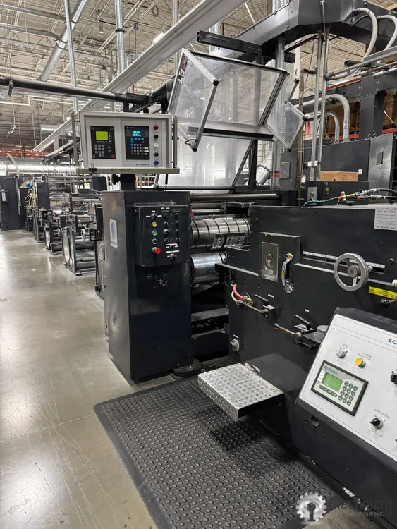 This Scheffer U-shaped inline finishing system is configured for inline web offset finishing, supporting ribbon handling, plow folding, gluing, cutting, and delivery. The U-shaped layout allows for efficient floor space utilization while maintaining smooth web flow and consistent product handling.