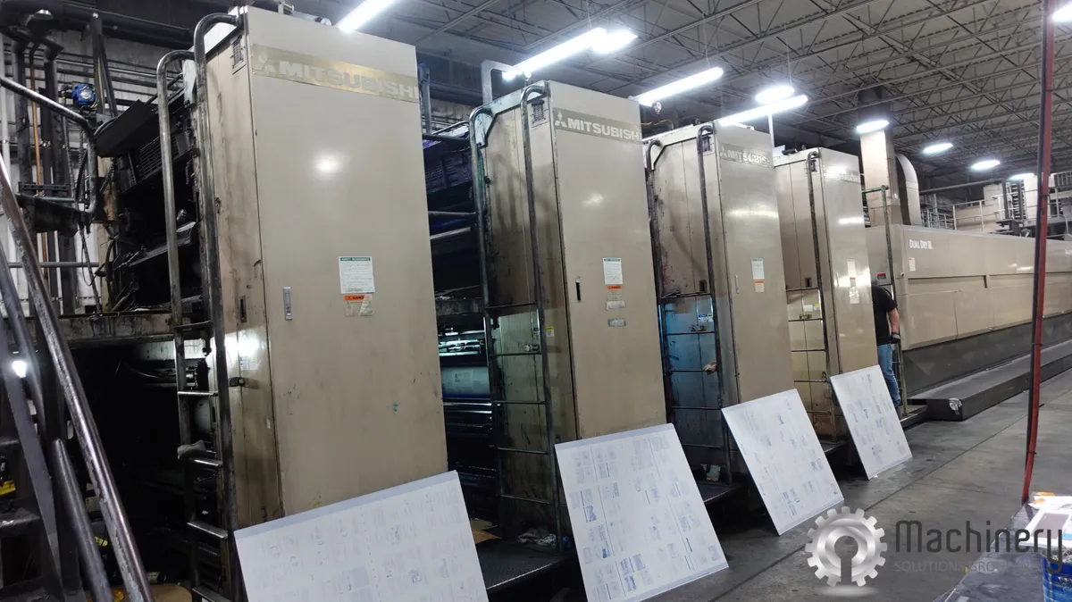 (4) Mitsubishi Diamond 32 Printing units, Semi-Automatic Plate Changers (SAPC), double around plate and blanket, remote inking and continuous dampening