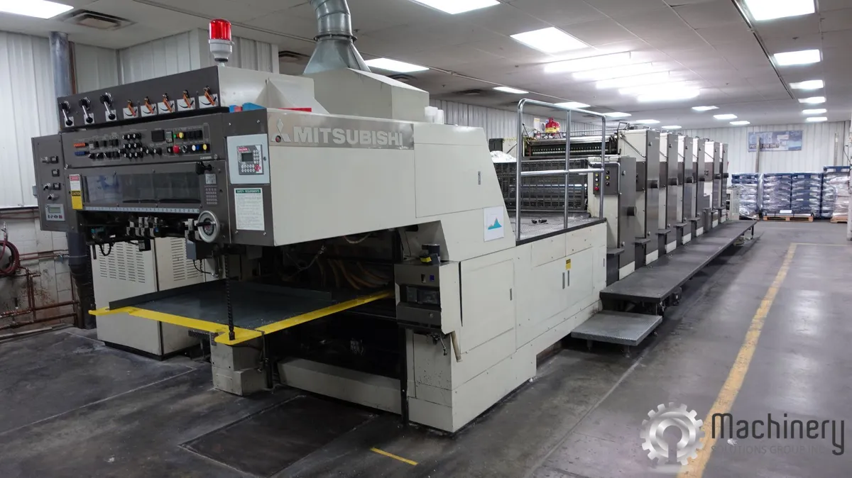 The Mitsubishi 3FR 6-color perfecting sheetfed offset press configured for 4/2 perfecting or 6/0 straight printing. This 40" (965mm) format press is designed for commercial printing applications including catalogs, direct mail, and marketing materials.