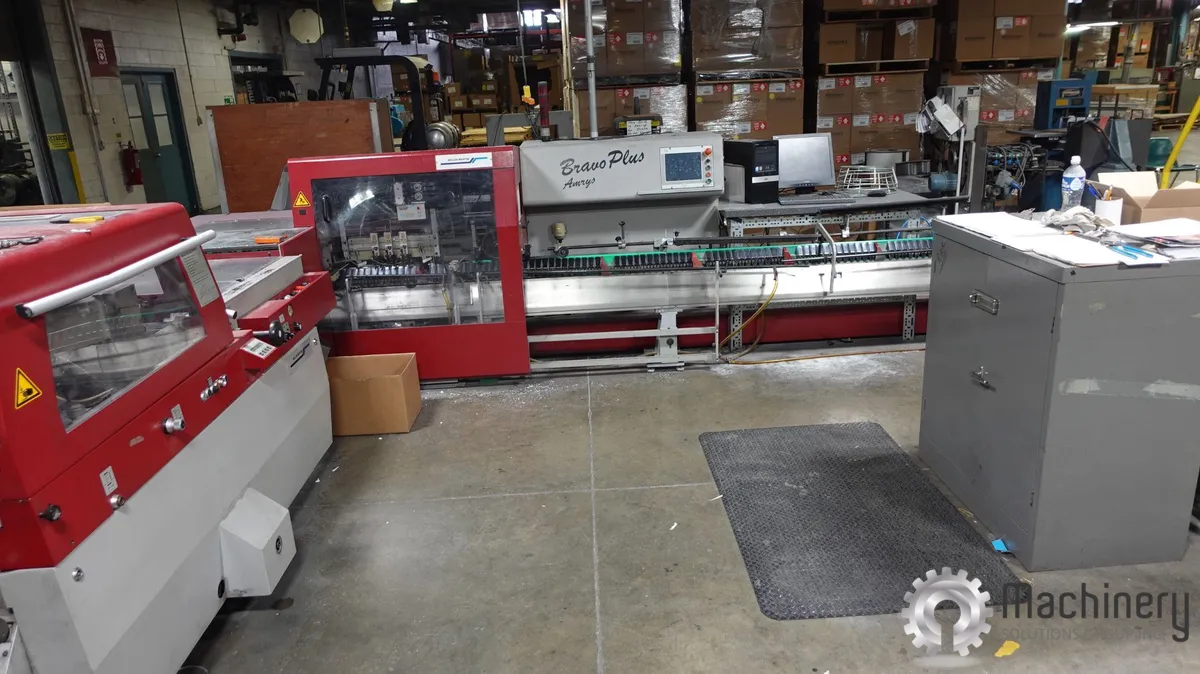 2008 Muller Martini Prima Plus (AMRYS) saddle stitching line configured with automatic make-ready system on the stitching and trimming sections.Designed for efficient booklet, magazine, and commercial print finishing.