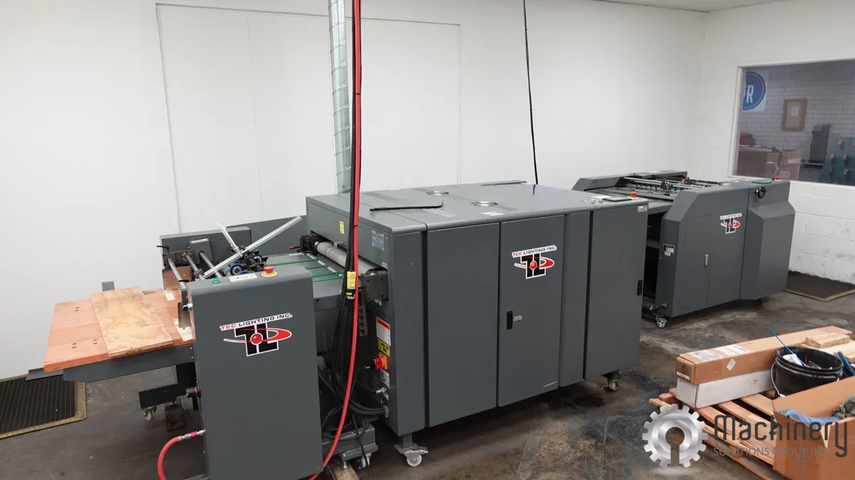 Tec Lighting TruCoat 30 hand-fed UV coater designed for cost-effective, high-quality coating on a wide range of printed substrates. This 30" unit features a three-roll application system with UV curing, delivering consistent finishes including gloss, satin, and matte. A compact, easy-to-operate system ideal for short to mid-run commercial print environments.