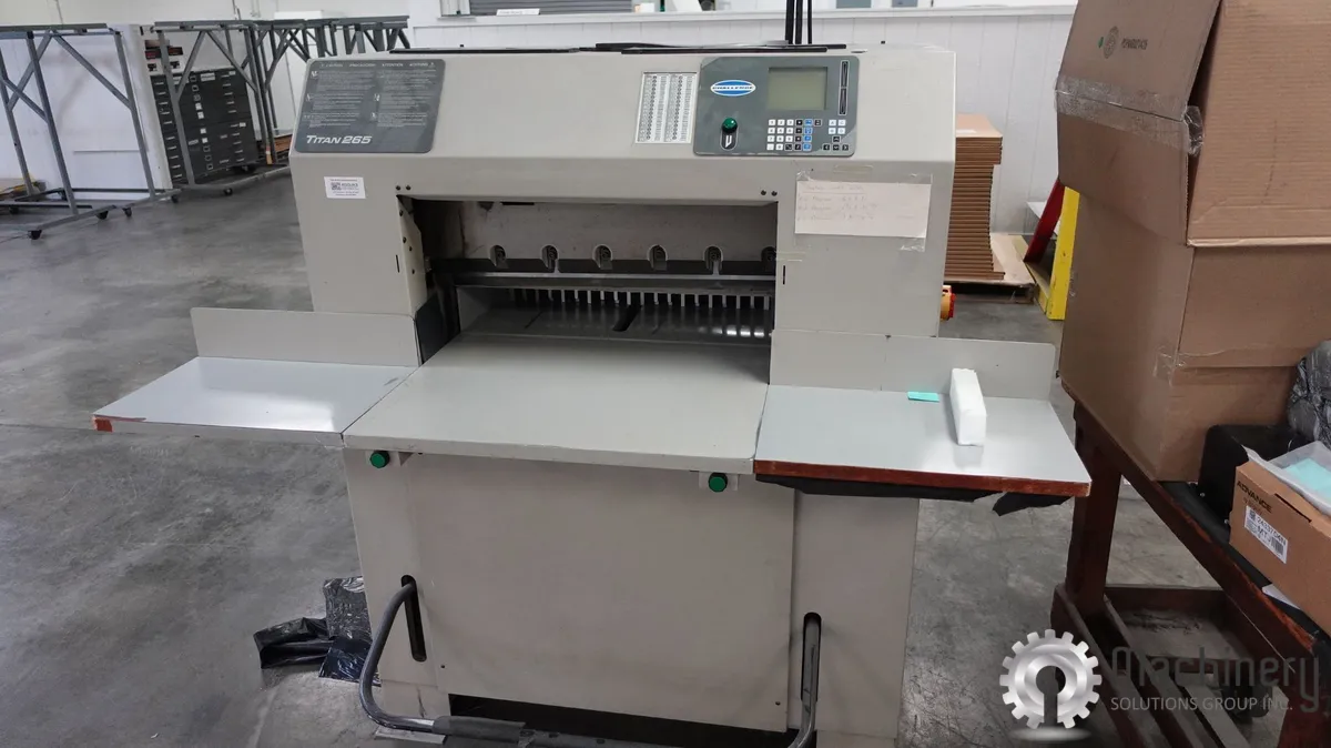 Challenge Titan 265 hydraulic paper cutter designed for precision cutting of paper, printed materials, and light packaging stock. This unit is well suited for commercial print shops, bindery operations, and finishing departments, offering reliable performance and accurate cutting results.